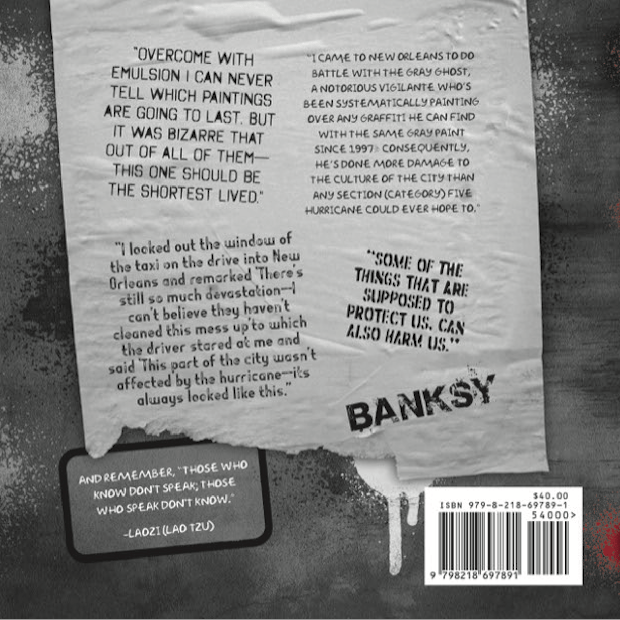 "NOLA Rain" delves into the captivating and mysterious saga of Banksy's unannounced visit to New Orleans in 2008. The 192 page book chronicles the appearance of 17 distinct pieces of street art across the city, widely attributed to the elusive British artist. Set against the backdrop of post-Katrina New Orleans, the narrative explores the public's reaction, the art world's intrigue, and the lasting impact of these politically charged and socially conscious artworks on the city and its residents. "NOLA Rain" uncovers the story behind each of the 17 pieces, examining their context, symbolism, and the unique way they resonated with a city still grappling with recovery and remembrance.